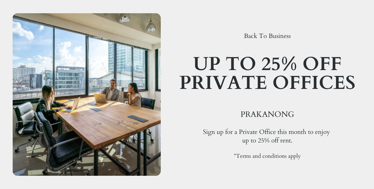 Sign up for a Private Office this month to enjoy up to 25% off.