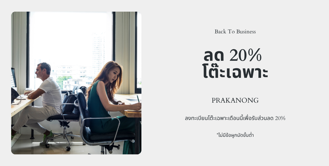 ลงทะเบียนเพื่อรับ Dedicated Desk ในเดือนนี้เพื่อรับส่วนลด 20%.